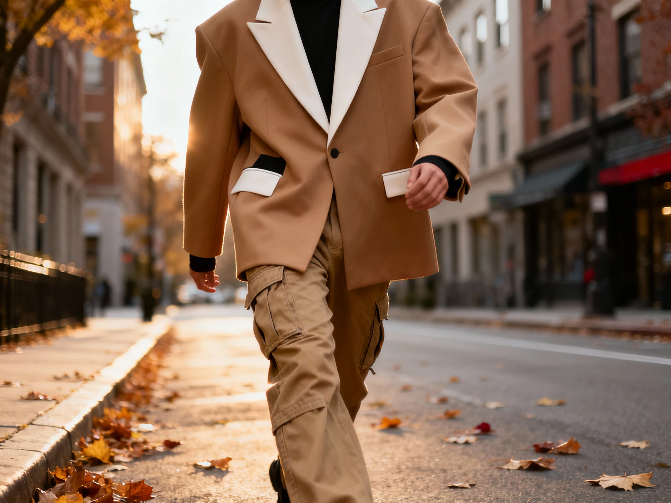 Choose a tee that peeks out under the blazer and **front-tuck** it to show a hint of waist. I love a **silver chain stack** and a **mini shoulder bag** to keep it chic. Don’t overthink color—neutrals on top, khaki or black cargos below, and you’re golden.