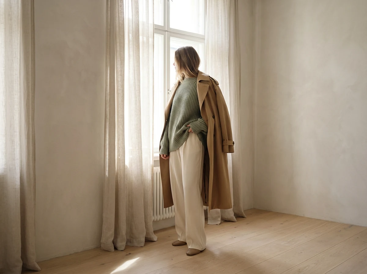 This combo gives that soft-focus, Pinterest-board glow. A chunky sage sweater against cream wide-leg trousers looks luxe without the fuss, aka the quiet-luxury uniform of my dreams. Toss on white sneakers and call it modern minimalism with a cozy twist.